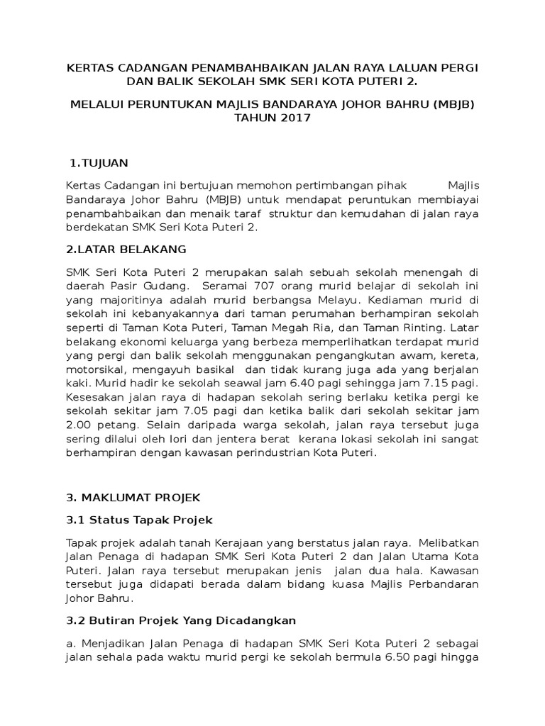 Kertas Cadangan Penambahbaikan Jalan Kepada Mbjbedit Pdf