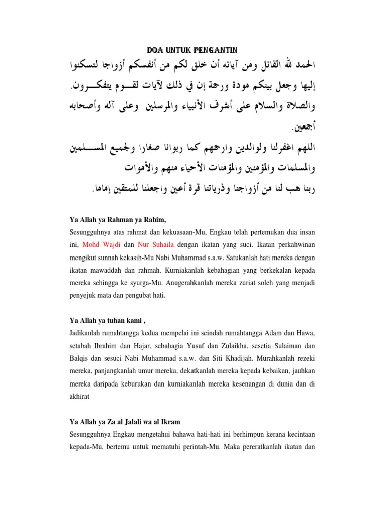 Doa Untuk Pasangan Pengantin Pdf